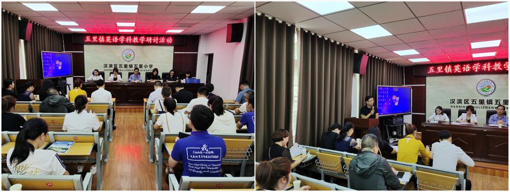在研讨交流环节,五里小学校长刘浩骋致辞。五里镇中心教研组长邓玉林介绍全镇英语学科情况。五里小学、民主九年制学校、四合九年制学校教务负责人就学校英语学科教育教学做了交流发言。